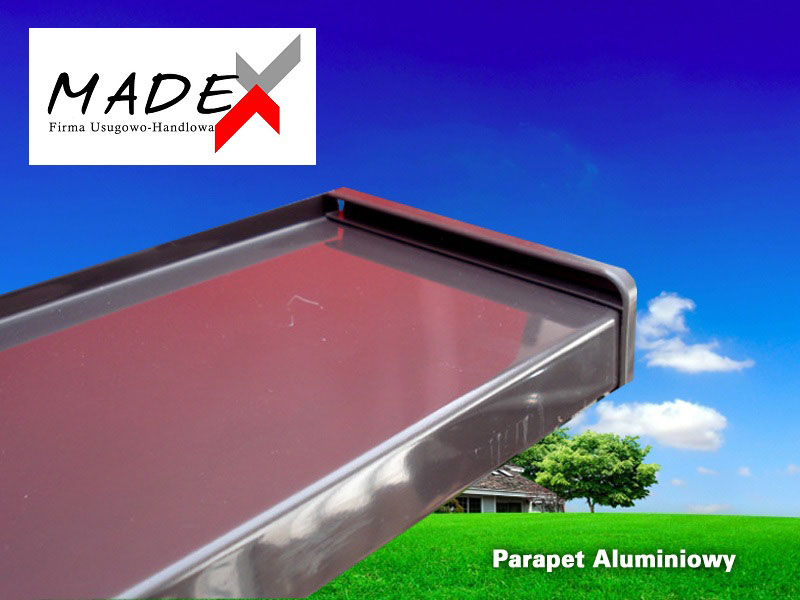 Wykonane są z blachy aluminiowej powlekane poliestrem w kolorze białym (RAL. 9010) i brązowym (RAL. 8019). Parapety aluminiowe zewnętrzne stanowią doskonałe zabezpieczenie przed wpływami warunków atmosferycznych są funkcjonalne, niepalne, łatwe w montażu i właściwie osadzone- stabilne, nie wymagają żadnych zabiegów konserwacyjnych.